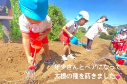 緑の木々の谷間にあった当園も、宅地化が進み今では住宅に囲まれてしまいましたが、周囲にはまだまだ自然が豊富な場所もあり折にふれ、木・花・虫など自然物を求めての観察、散歩などを保育の中に多く取り入れております。